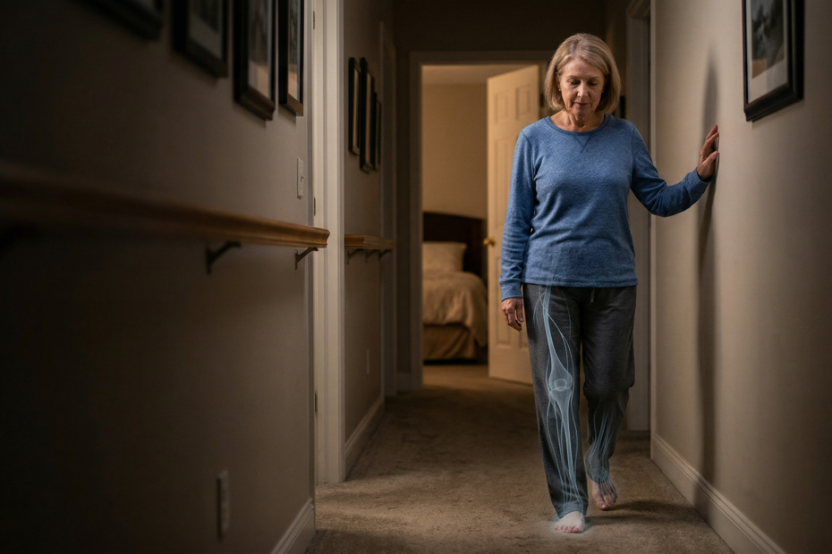 Neuropathy reduces sensation from the soles of the feet, and in the dark your brain loses the visual “backup system” it uses to compensate. That’s why balance often feels worse at night and why simple home safety upgrades can prevent falls.