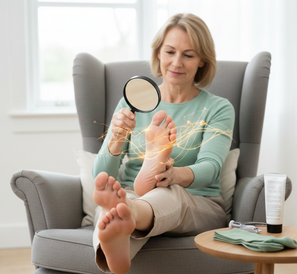 - 👀 Check your feet daily tops, bottoms, and between the toes. Use a mirror or ask for help if needed.